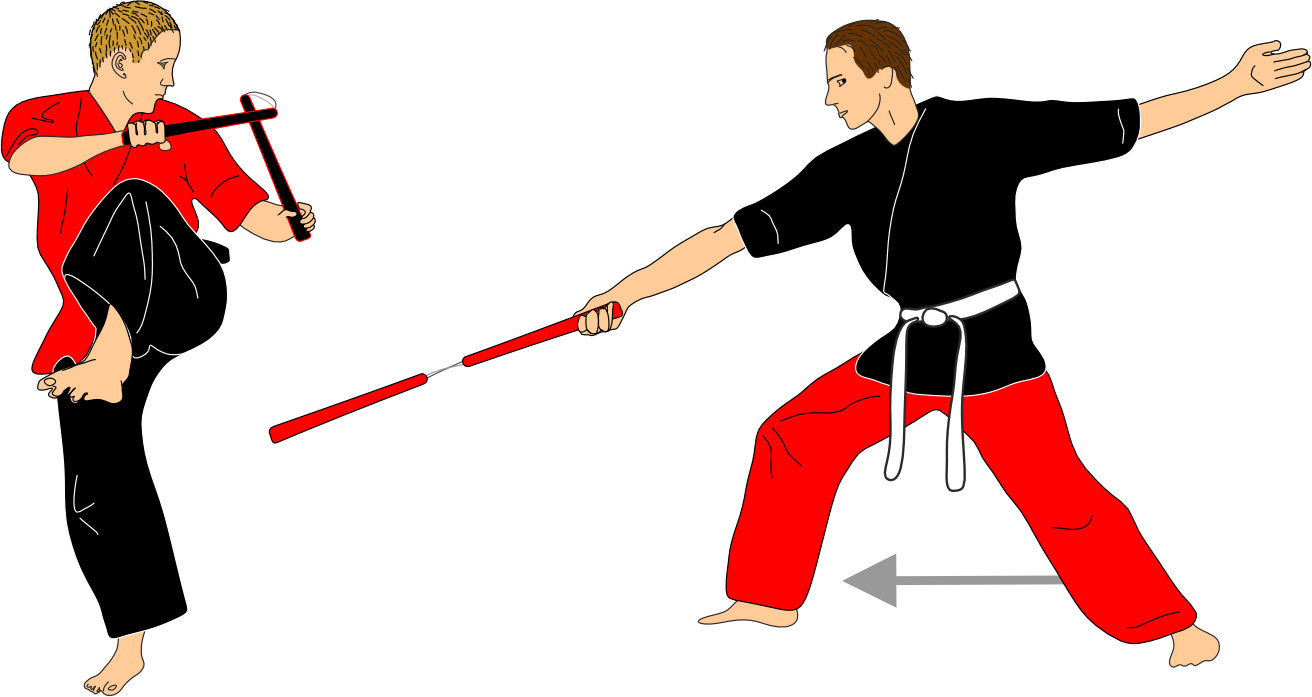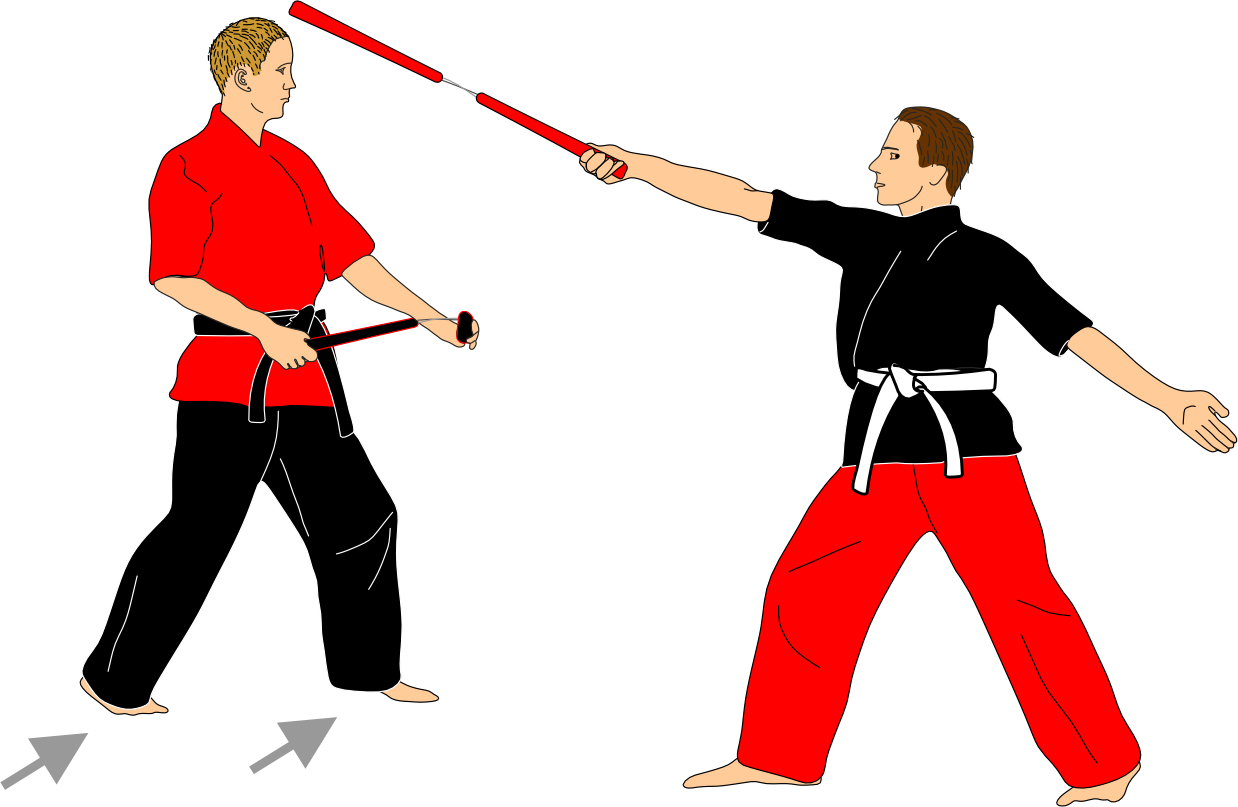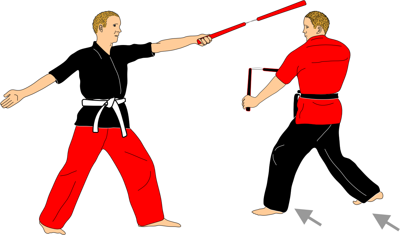 Each sequence begins with the attacker initiating an attack solely to assess distance. After this action, the attacker always recovers the nunchaku to the same guard position. This phase is intentionally repetitive and serves as a study of distance, timing, and precision with the nunchaku.