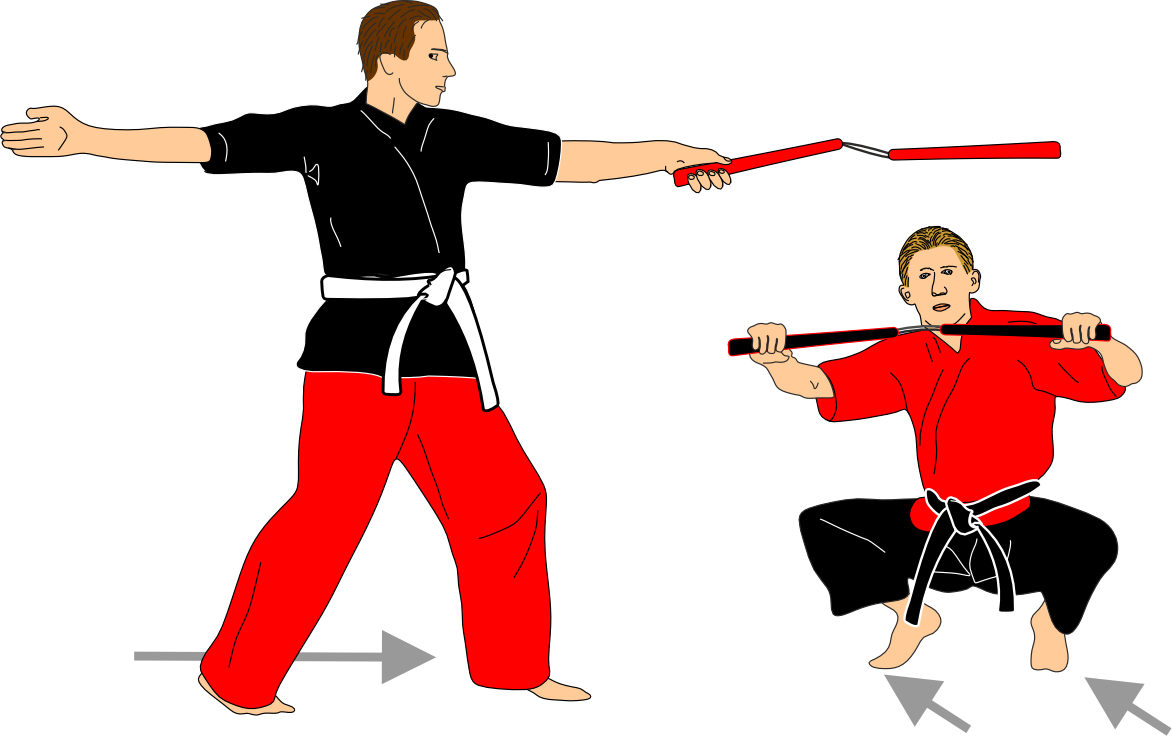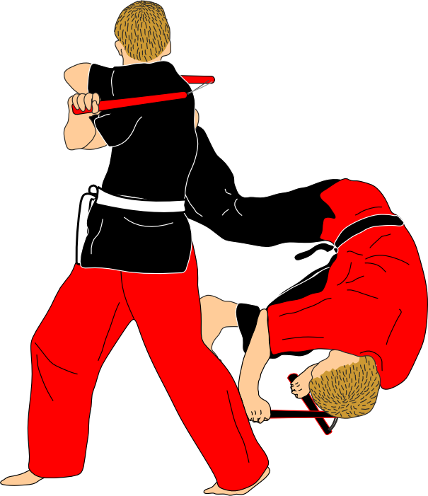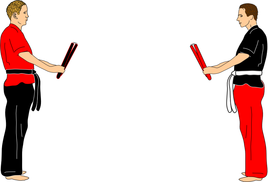 The combinations are always practiced with soft nunchaku (nunchaku mousse). This allows safe training, clear distance work, and precise timing without unnecessary risk. At a higher level, the same combinations can be practiced with wooden nunchaku, but at that point they no longer belong to the basic level.