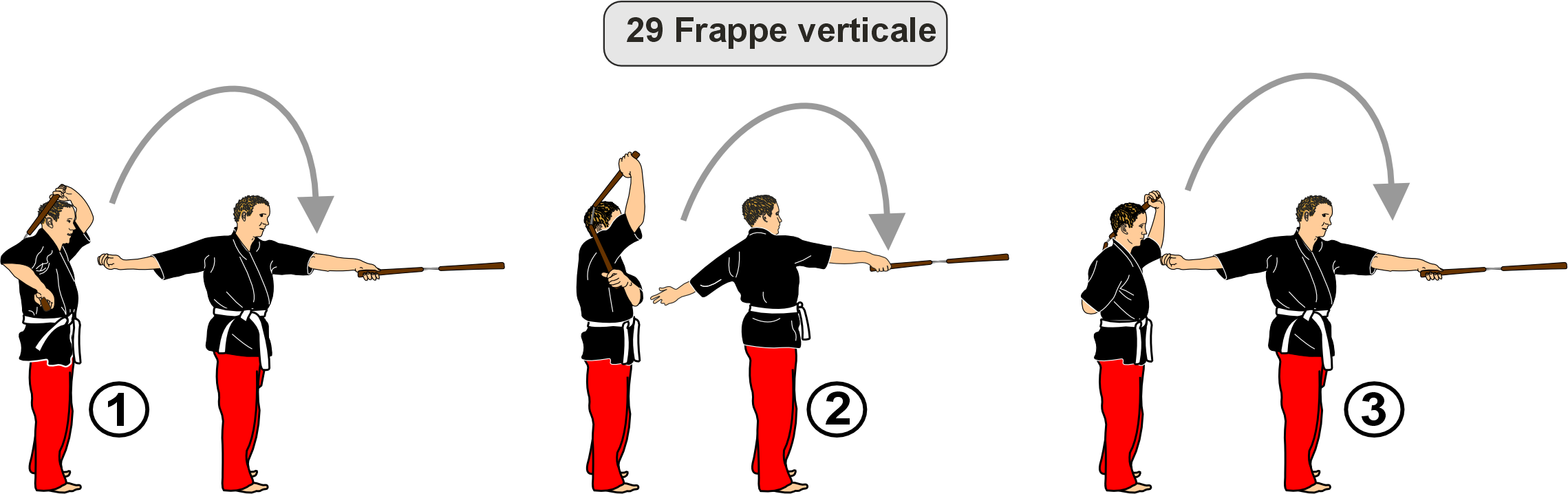 Strike 29 ends on the right: Reverse lateral strike, stance: à l’épauleSalute: Saluez