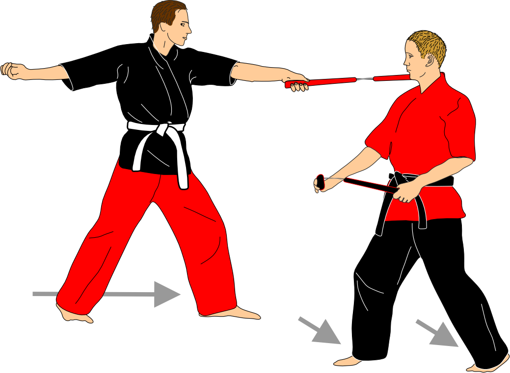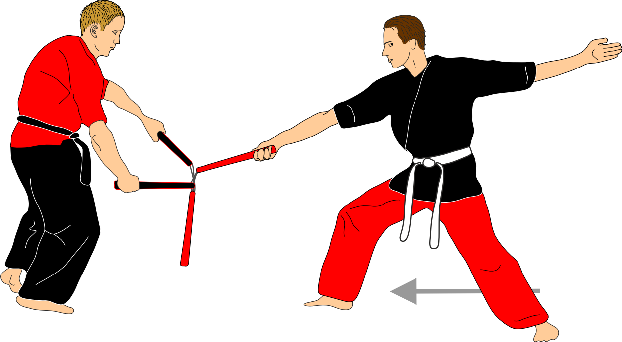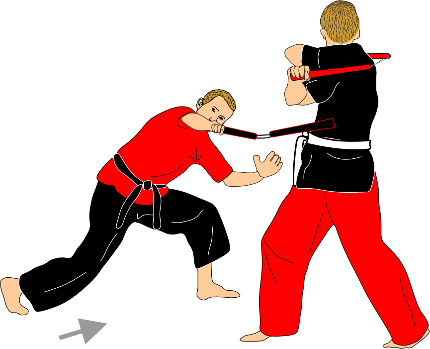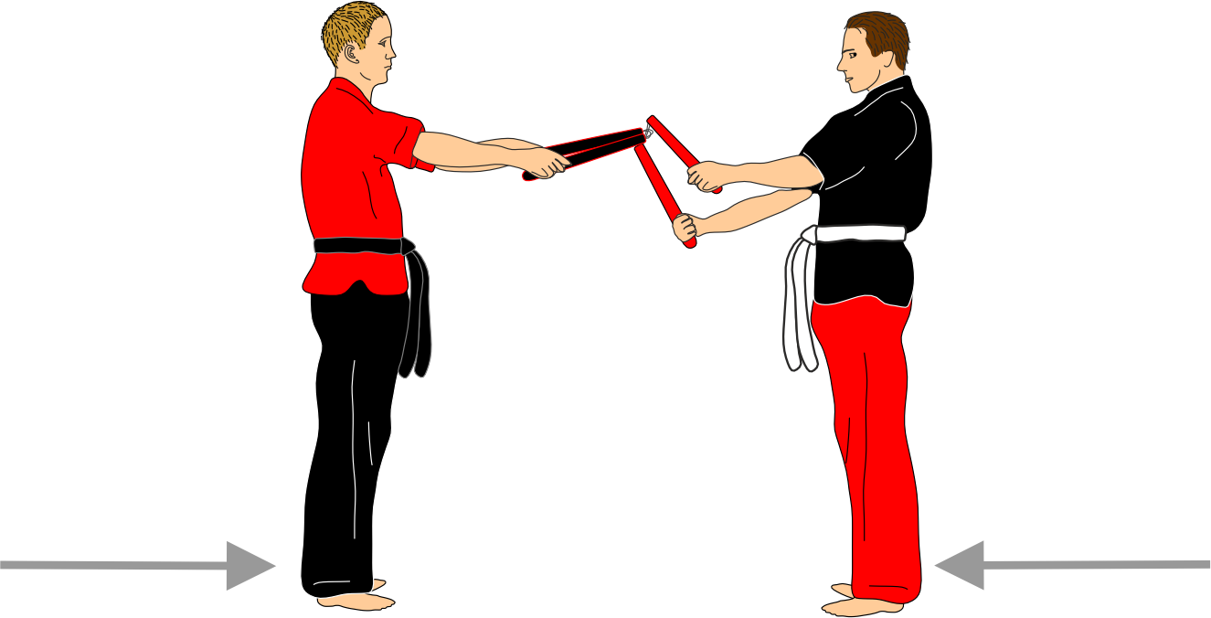 The combinations are always practiced with soft nunchaku (nunchaku mousse). This allows safe training, clear distance work, and precise timing without unnecessary risk. At a higher level, the same combinations can be practiced with wooden nunchaku, but at that point they no longer belong to the basic level.