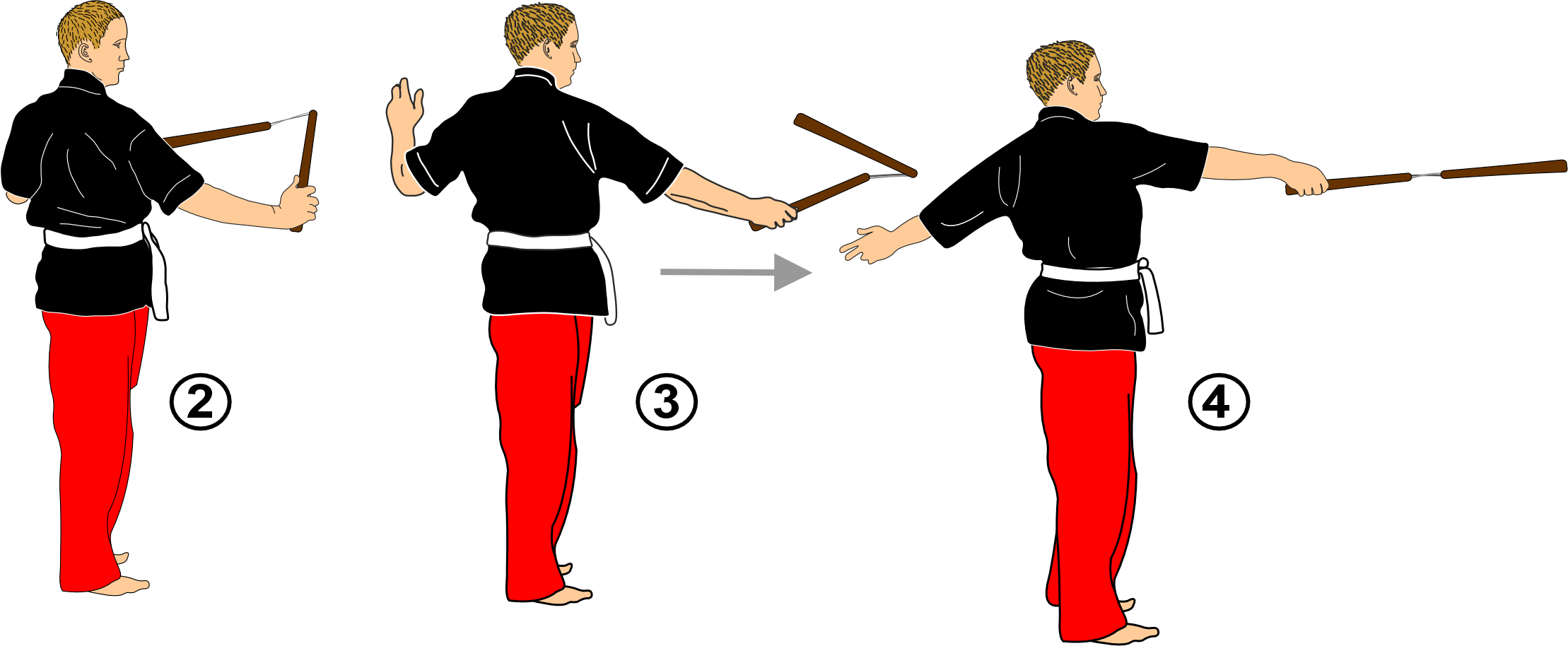 5 -6 . Recovery of the nunchaku 7. Garde: à l’aisselle