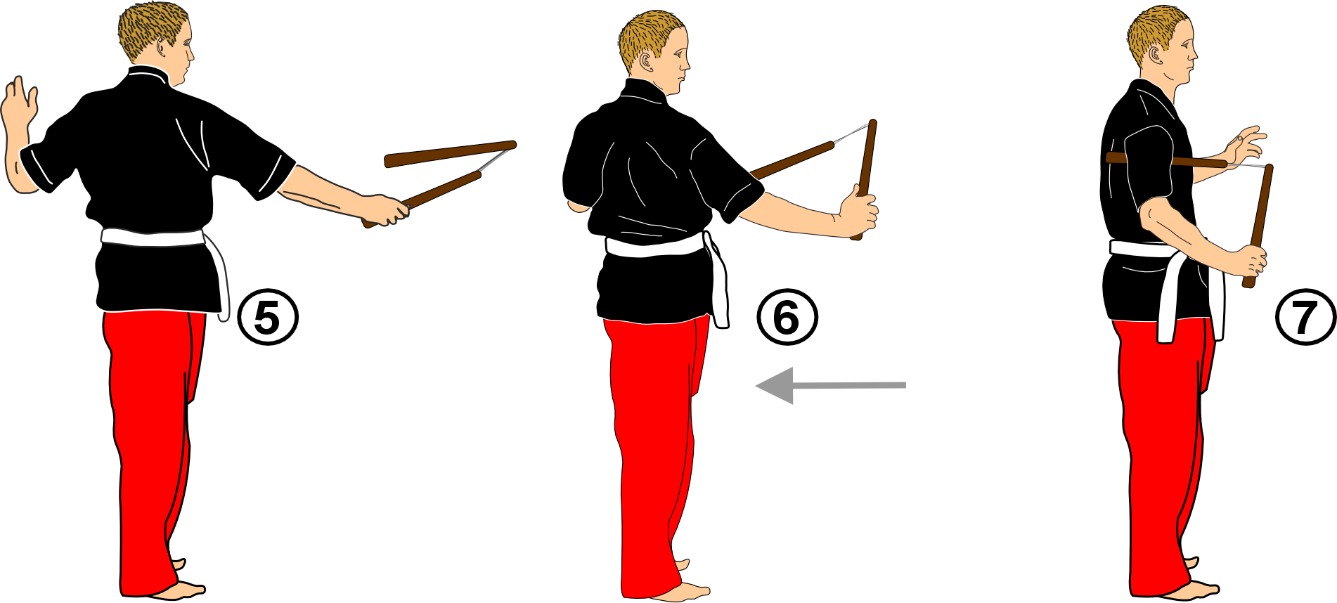 5 -6 . Recovery of the nunchaku 7. Garde: à l’aisselle