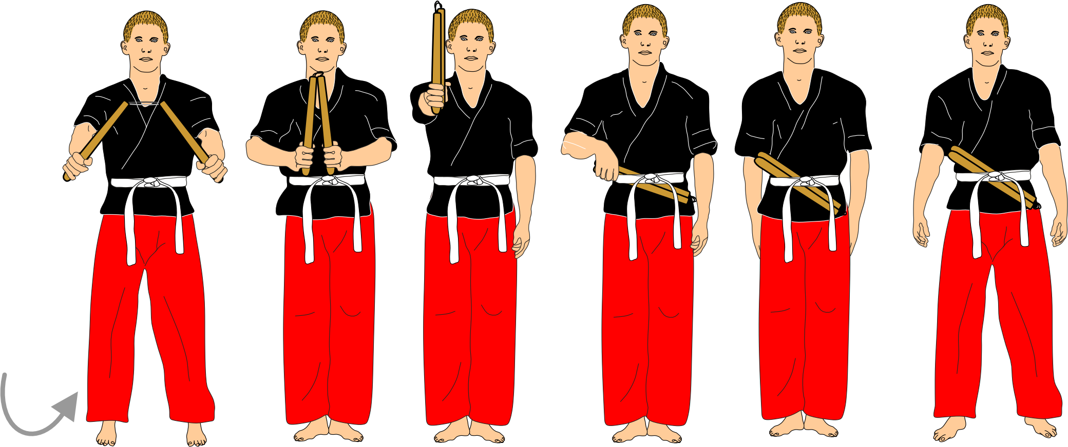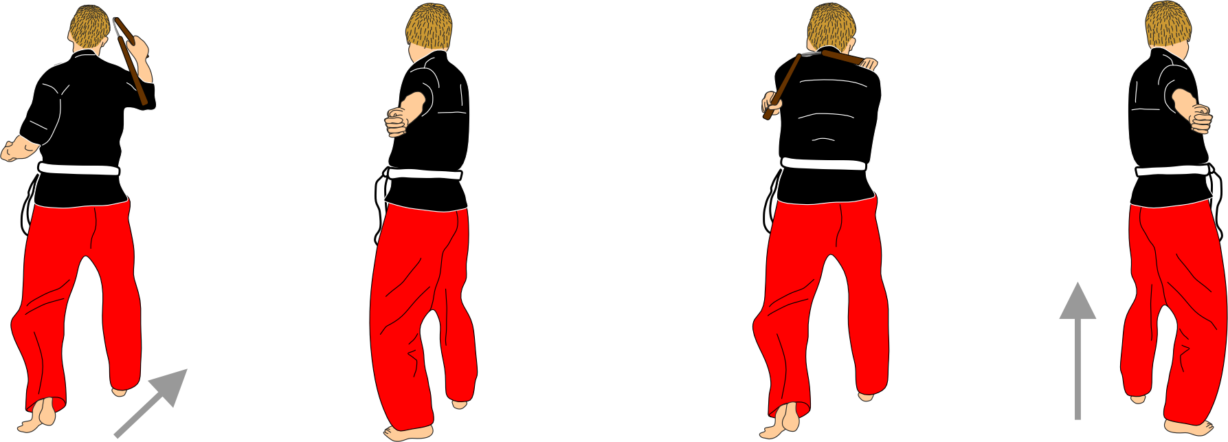 26 – Esquive basse avec pivot 27 – Frappe latérale 28 – Garde derrière le dos