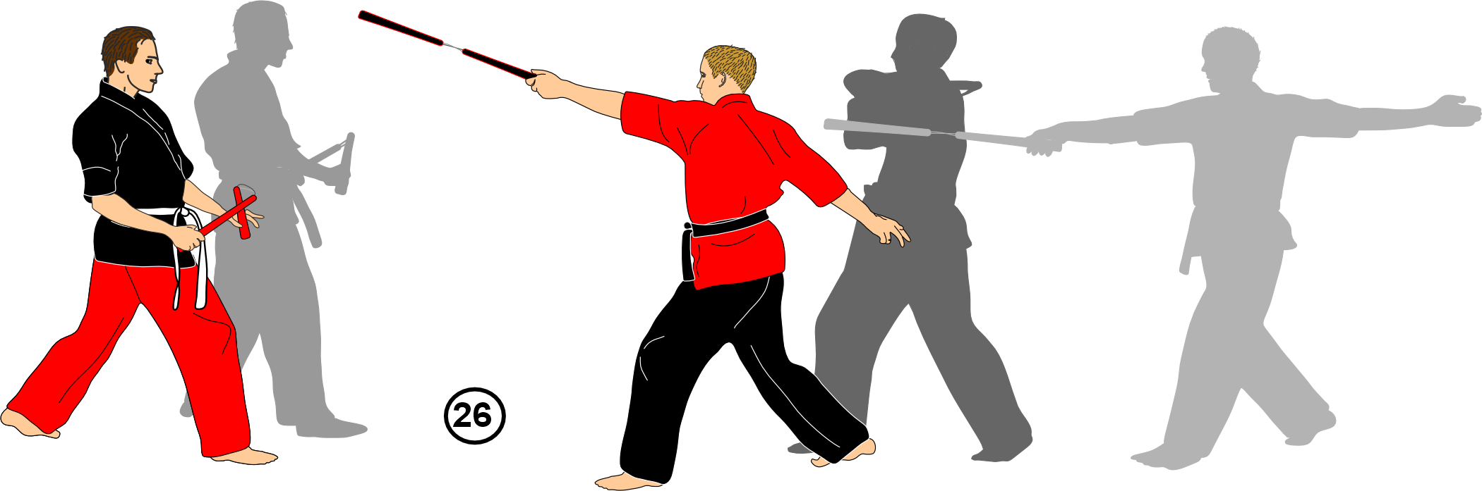 20. He dives away (without a nunchaku) and you strike him as he retreats.