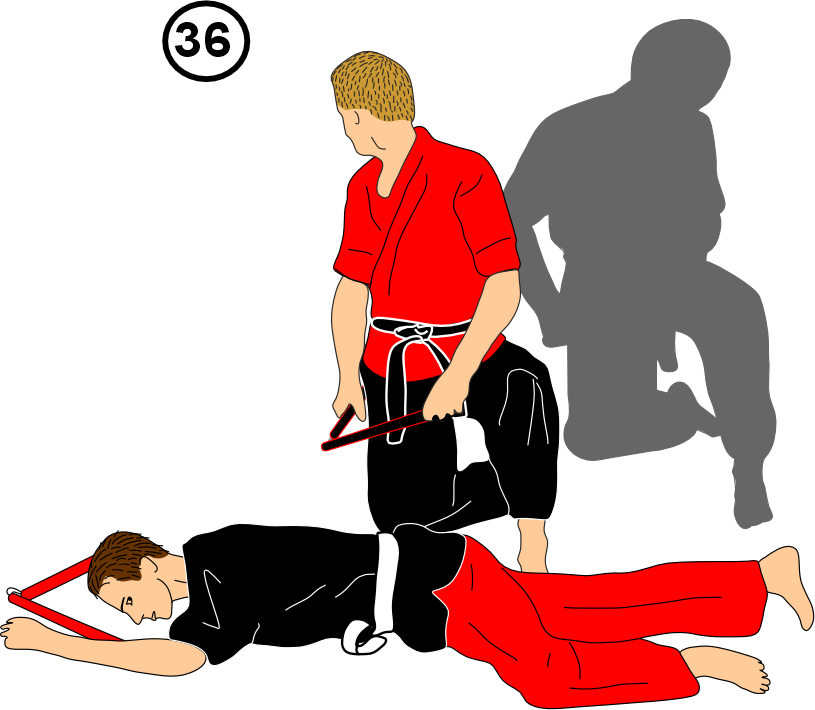 35. He falls forward; you deliver one final strike with kiai.