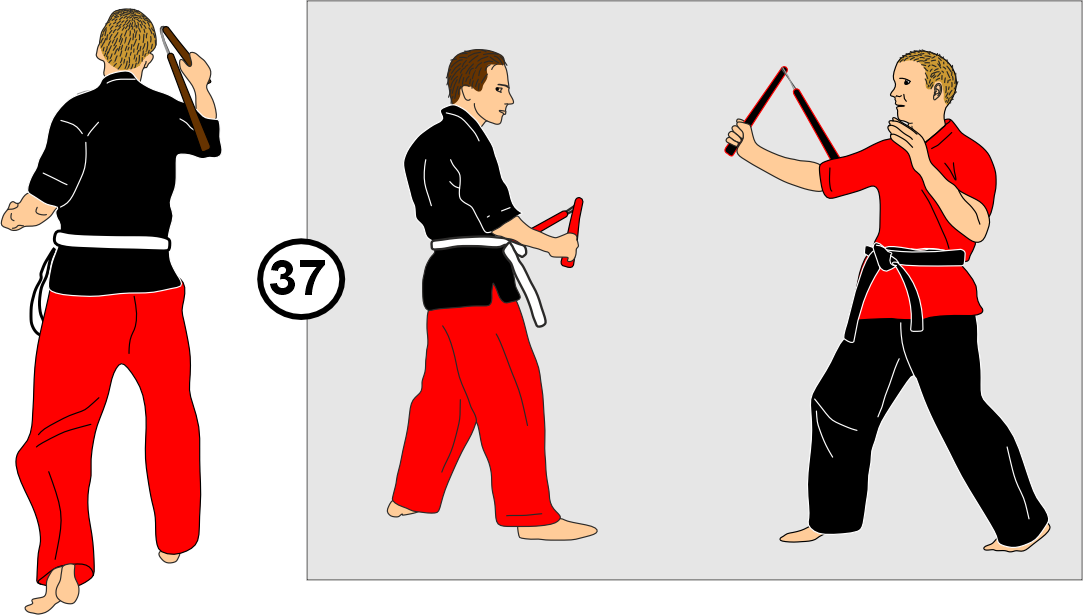 19. You advance, but the opponent moves backward and strikes; you knock the nunchaku out of his hand (arraché).