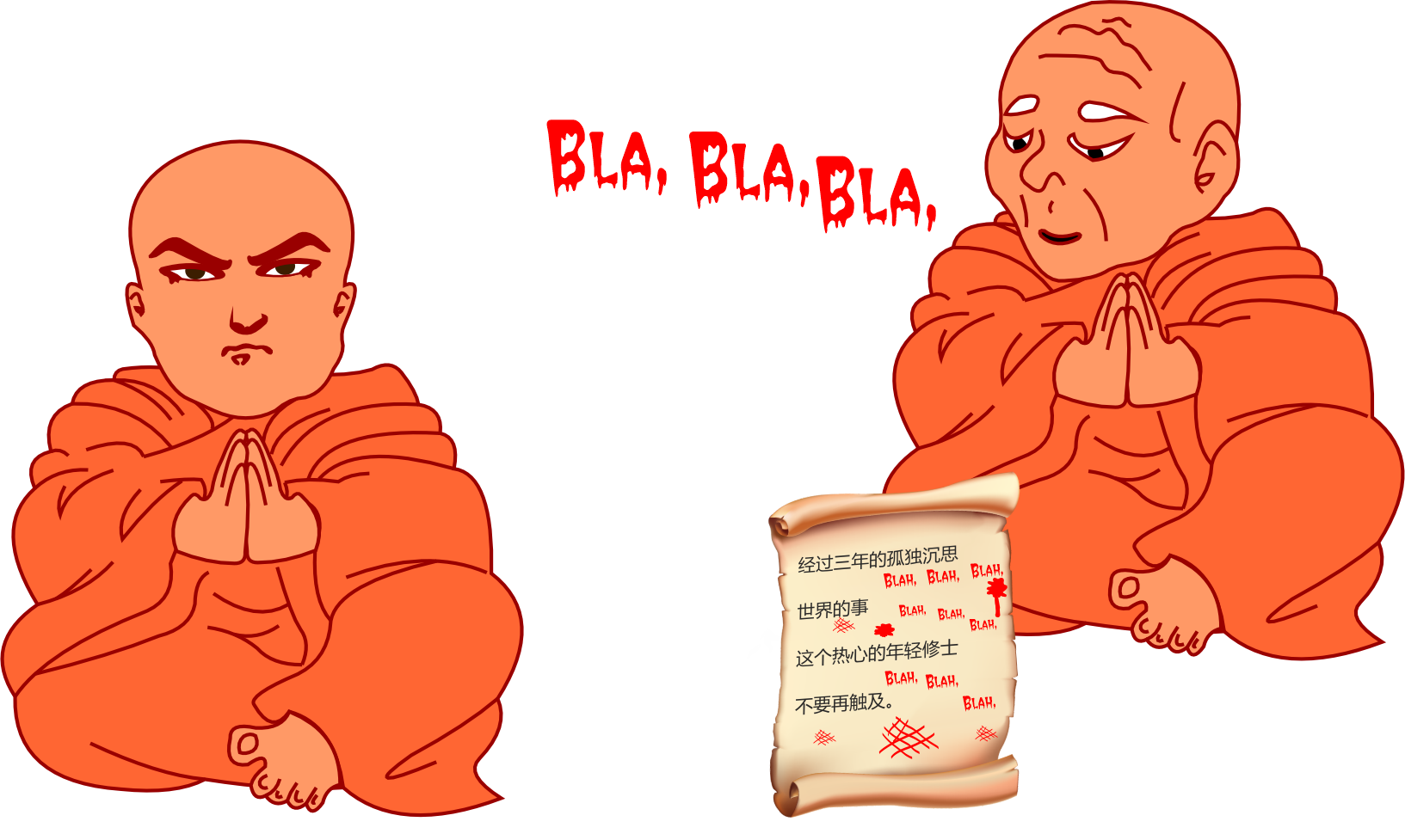 The following week, the monastery attendant returned and gave the monk a scroll similar to the one the monk had sent his master but tied with a different ribbon. 'From the master', said the attendant tersely. With a feeling of excitement, the monk tore off the ribbon and smoothed out the scroll. As soon as he saw what was written, his eyes grew wide and his face turned ashen. It was his own scroll. At the end of each line, the master had written the words 'blah, blah, blah'.