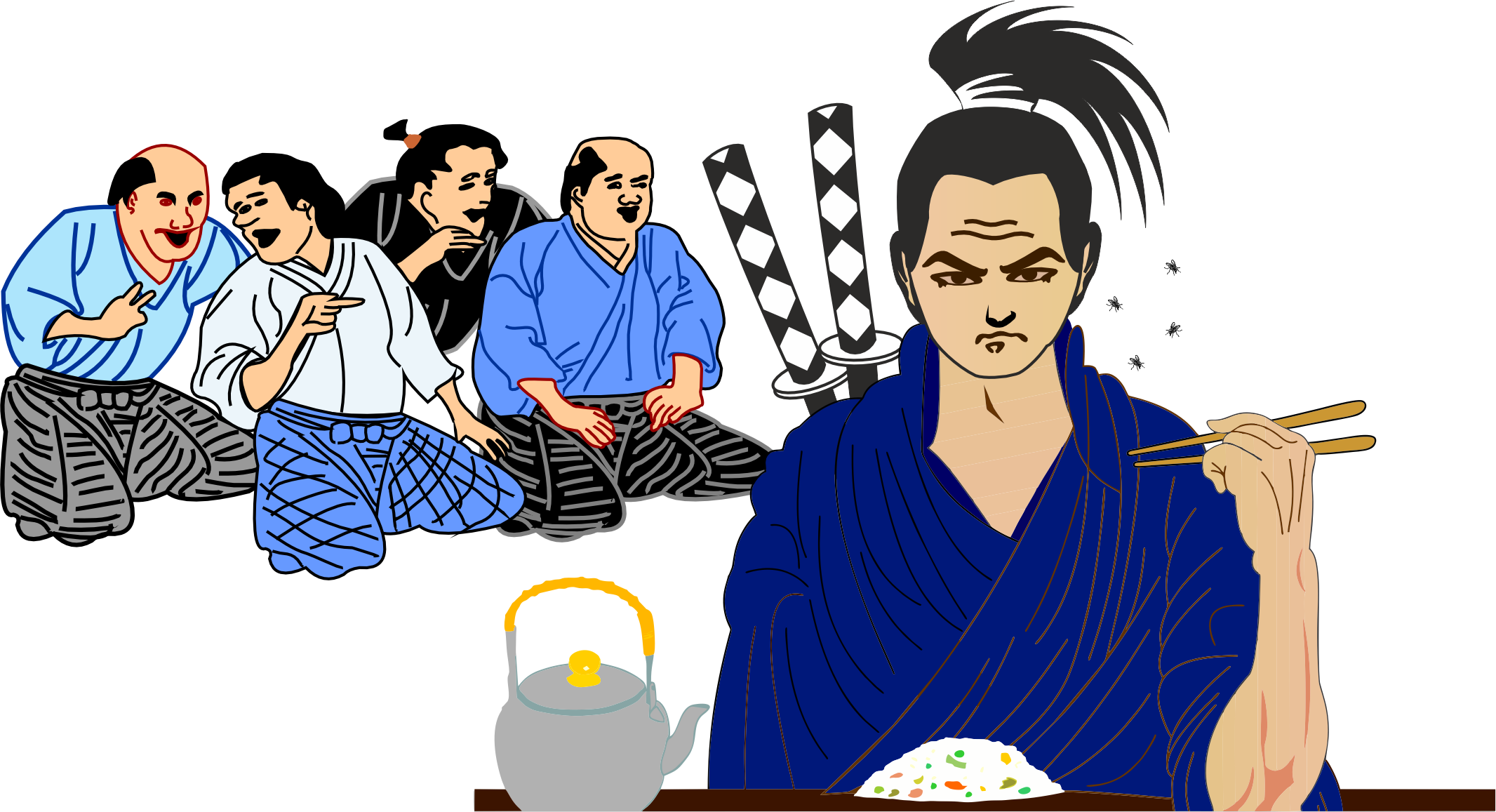 A samurai was quietly enjoying his meal in a small inn, completely ignoring the four flies circling around him. At the same time, four ronins masterless samurai entered the restaurant. Their eyes were fixed with envy on the two beautiful swords the samurai carried on his back. Such weapons must have been worth a small fortune, and they were sure the lone samurai wouldn’t stand a chance against them.