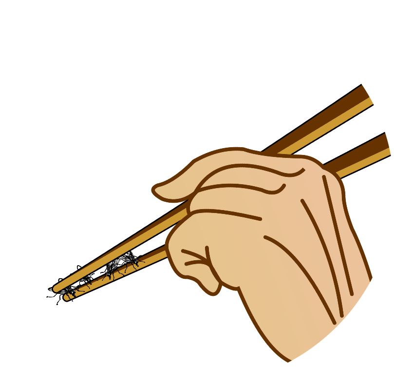 As he finished, he slowly picked up his chopsticks once again. Then, with a lightning-fast and precise motion, he caught all four flies mid-air killing them with a single squeeze. He gently set the chopsticks down without ever looking at the ronins. A deep silence followed.
