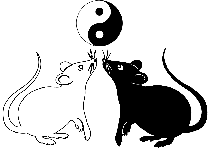 Meanwhile, two little mice one white, one black start nibbling at your vine.