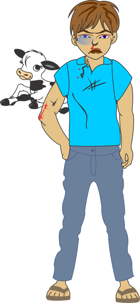 The boy went straight to his family and friends in the village to complain. Everyone thought it was an outrage and not at all fair but nobody did anything to help. They were all afraid of the elder brother's fiery temperament and knew how quickly he became angry when challenged. The boy felt the injustice of what had been done to him and, full of sorrow, went away from the place where he was born, taking his calf with him.