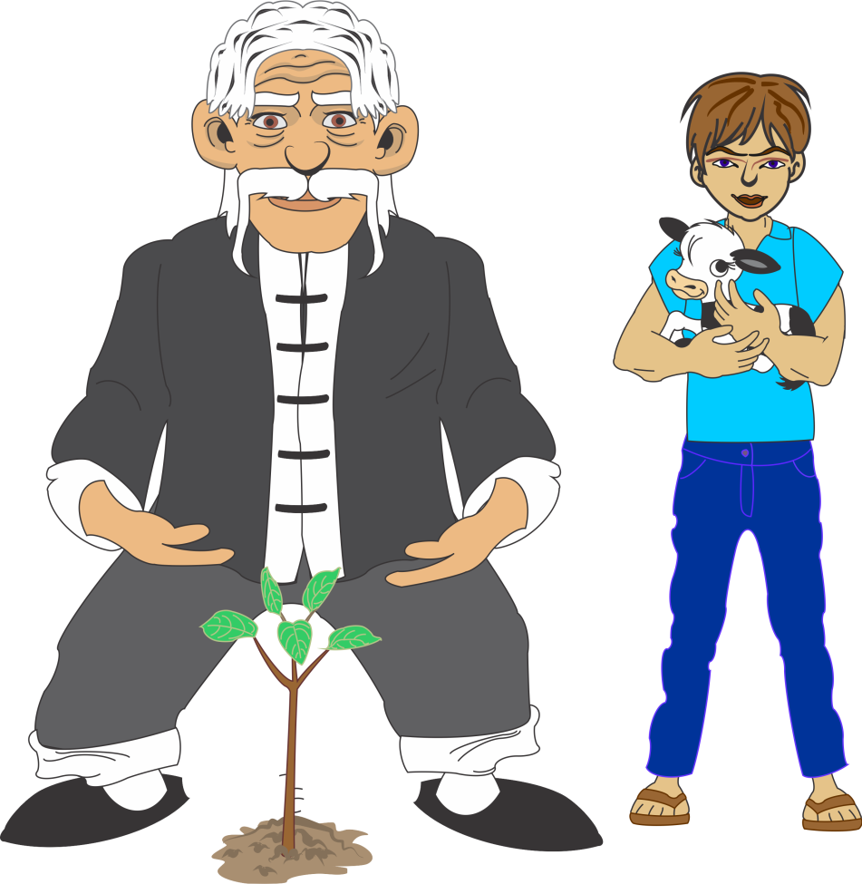 Early the next morning, the boy came to see the monk who was sitting in front of a young tree he had just planted. The monk said to the boy, 'You don't have enough strength yet to learn how to fight and need to work on it first.' The monk instructed the boy to lift the calf onto his shoulders each morning and jump over the newly planted tree thirty times. 'When you are strong enough, I will teach you howto fight.' 'That's easy', said the boy and he began to jump up and down. Days, weeks, months and years passed by. The calf had grown into a hefty cow and the small sapling had turned into a tree. After three years had gone by, the boy asked the monk whether he was now strong enough to learn how to fight.