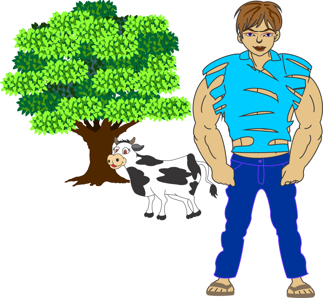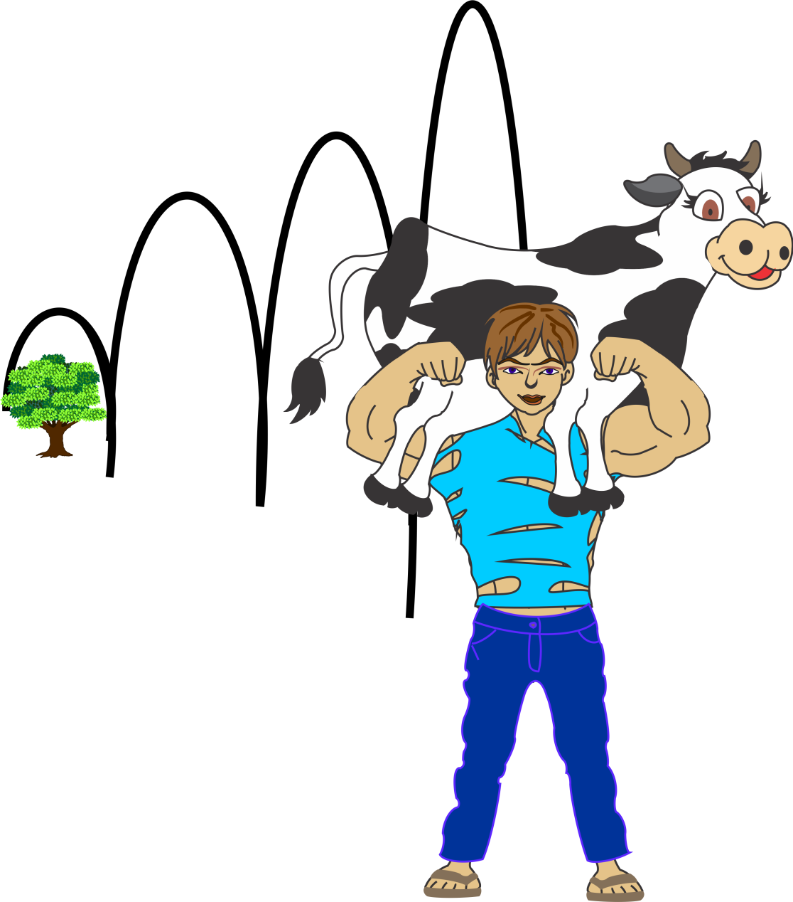 When he arrived at the farm, he started working on the land. It wasn't long before his brother heard that his younger brother had returned to claim back his piece of land. The elder brother became very angry and went straight to the boy to teach him a lesson he would never forget. He would beathis brother up so badly that he would never return. When the boy saw his elder brother, he lifted the cow onto his shoulders and jumped towards him with giant leaps.